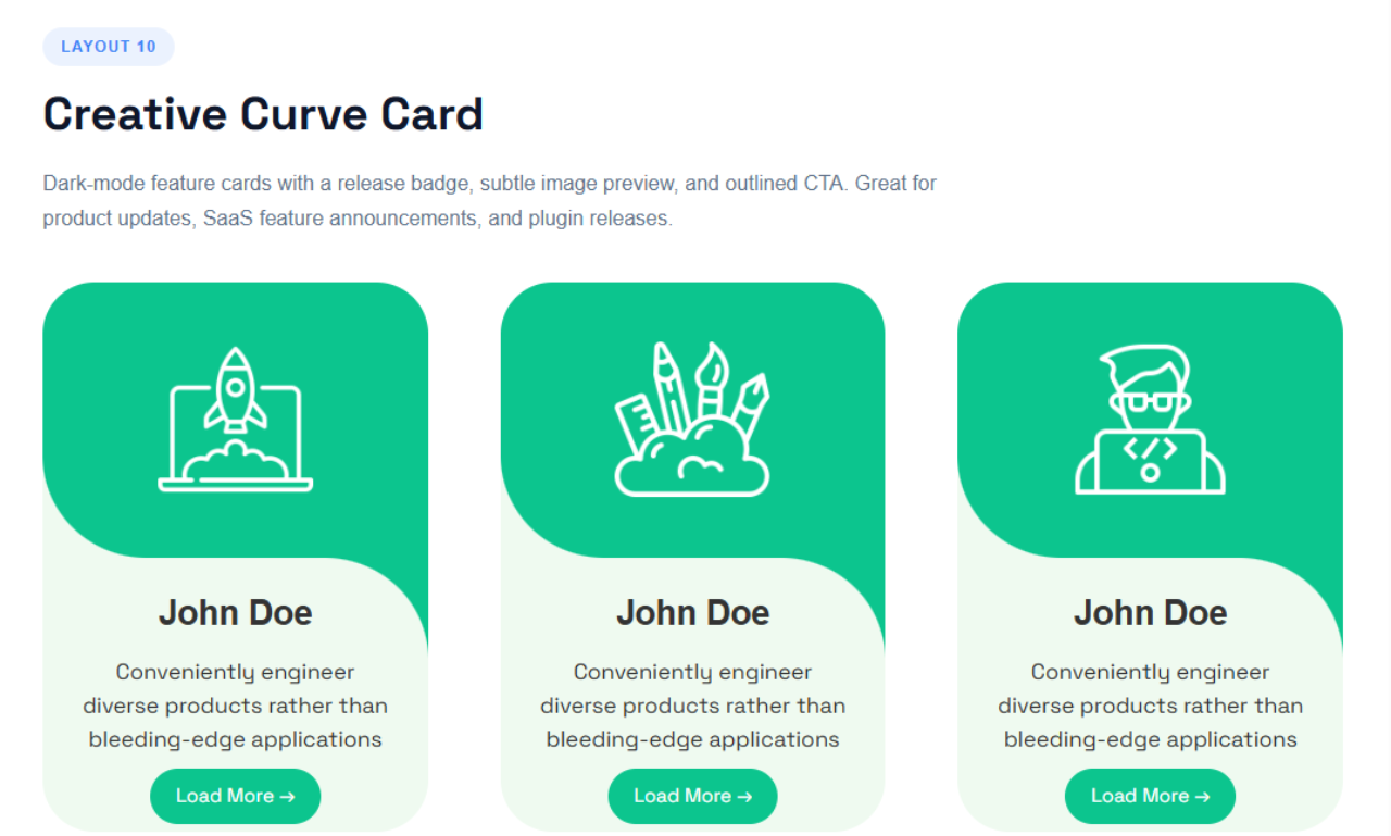 - Cards layout This plugin offers multiple customizable layouts like grid, list, and carousel, making content display easy and flexible.