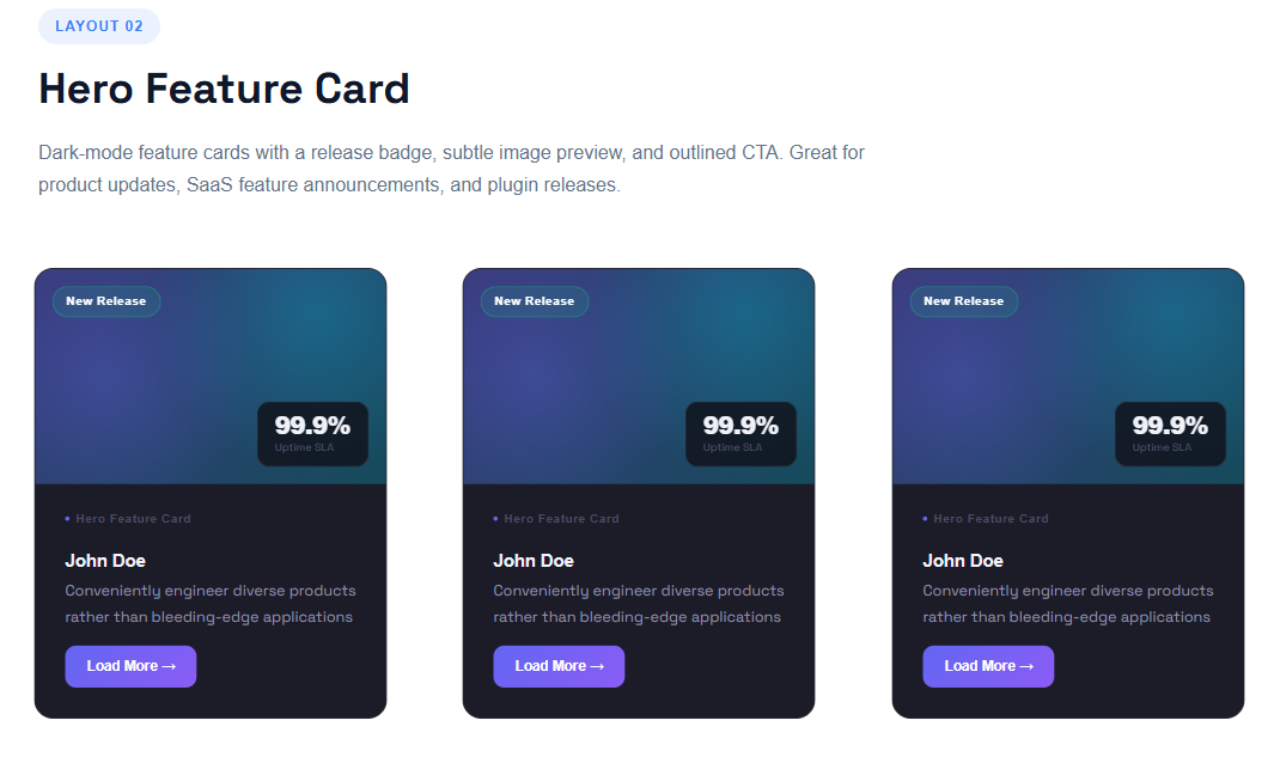 - New Free Layouts: Hero Feature Card, Achievement Card.