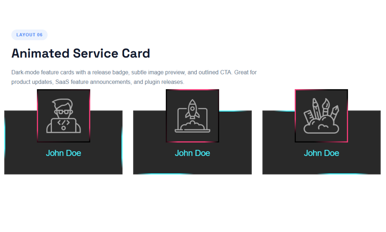 Whether you need to highlight core features, showcase team profiles, display achievement metrics, or present your skill progress, Cards Layout provides a rich set of beautifully crafted, responsive components to elevate your website’s design.
