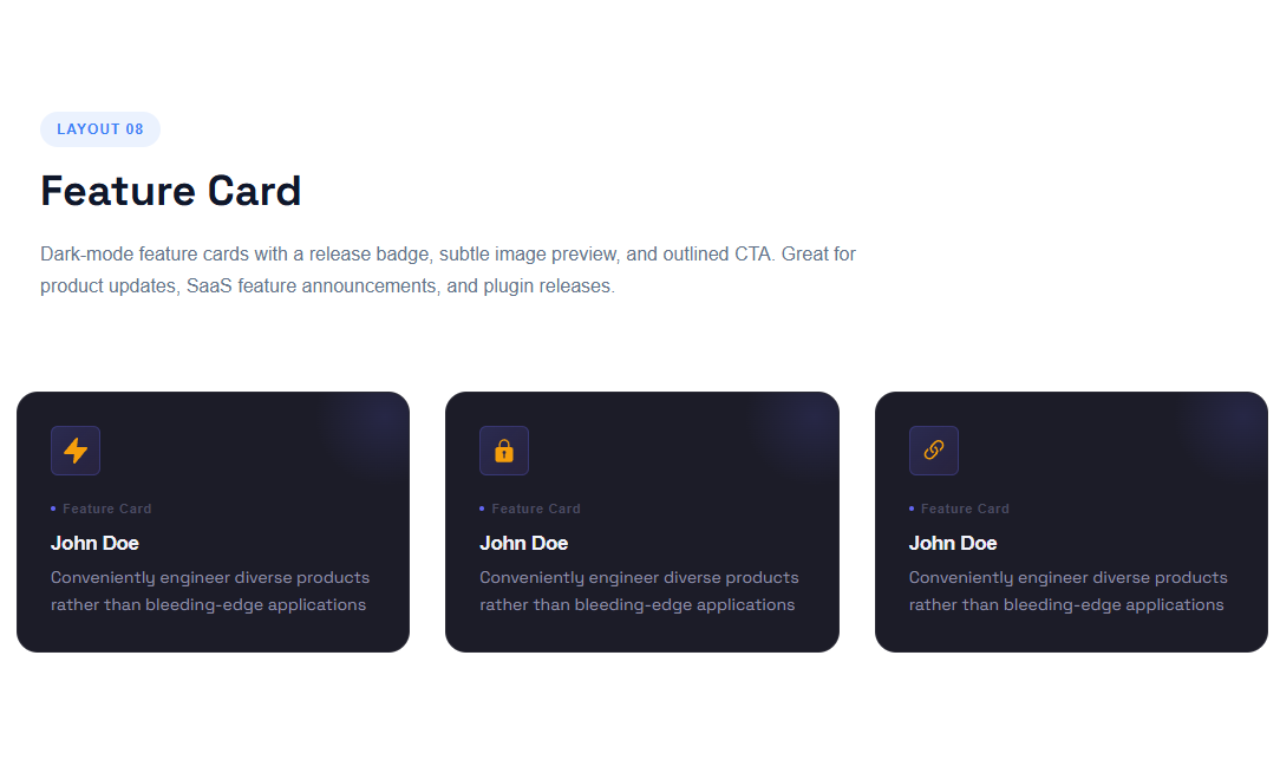 - Feature Card: Premium, sleek layout for displaying software or service features.